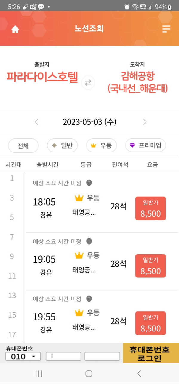 일단 버스타고 어플로 시간이라도 잡아 놓으셔요..