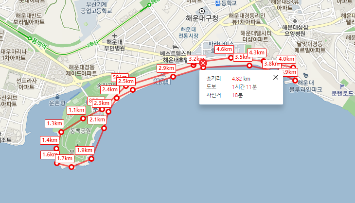 해운대의 아침 바닷가 트래킹 뷰