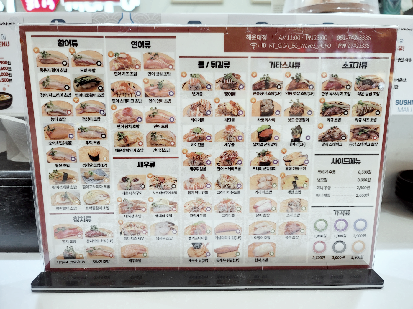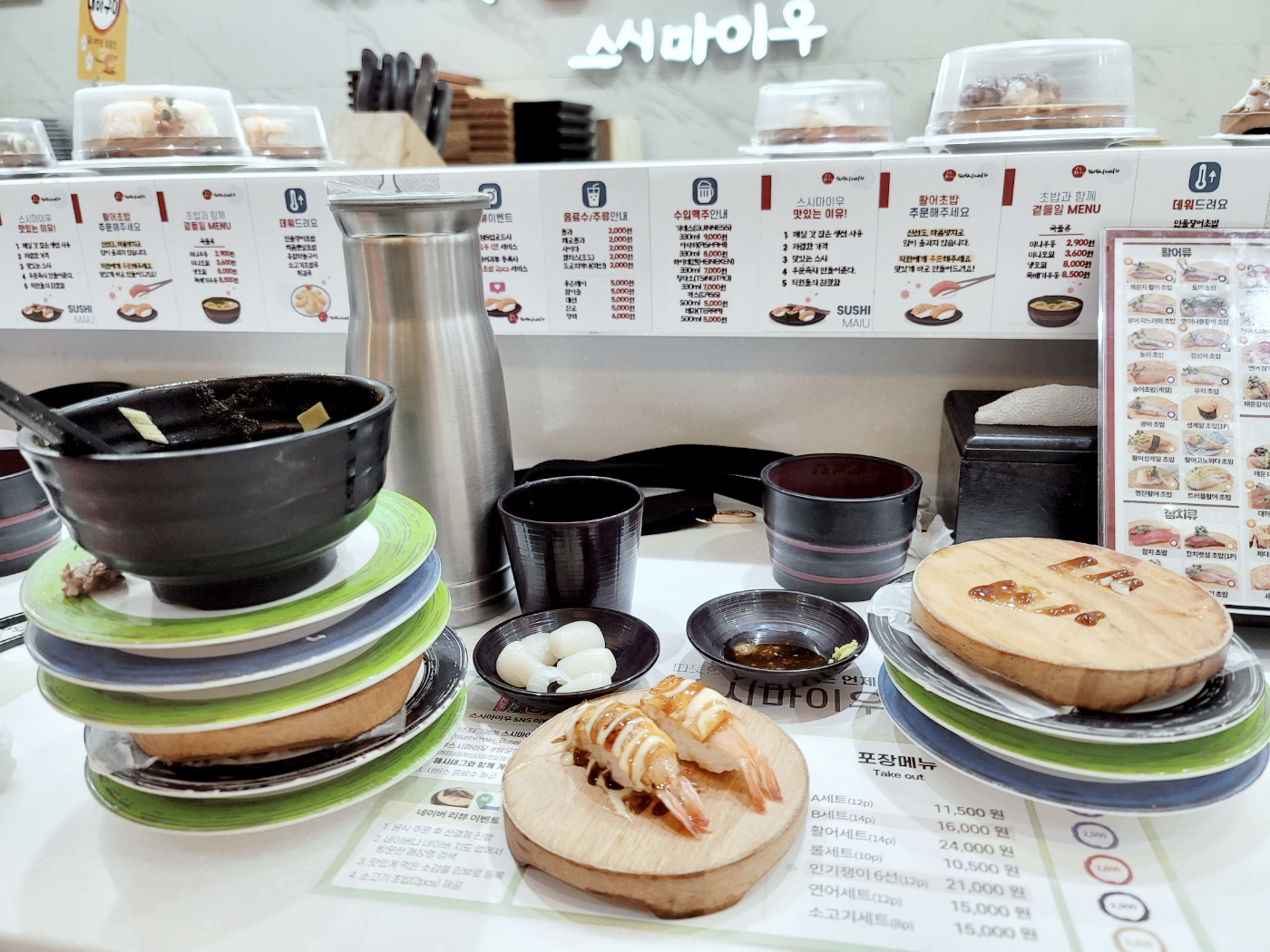 색깔별로 접시가 나눠져 있으니 돈에 맞추어 잘 골라 드시길 추천합니다.