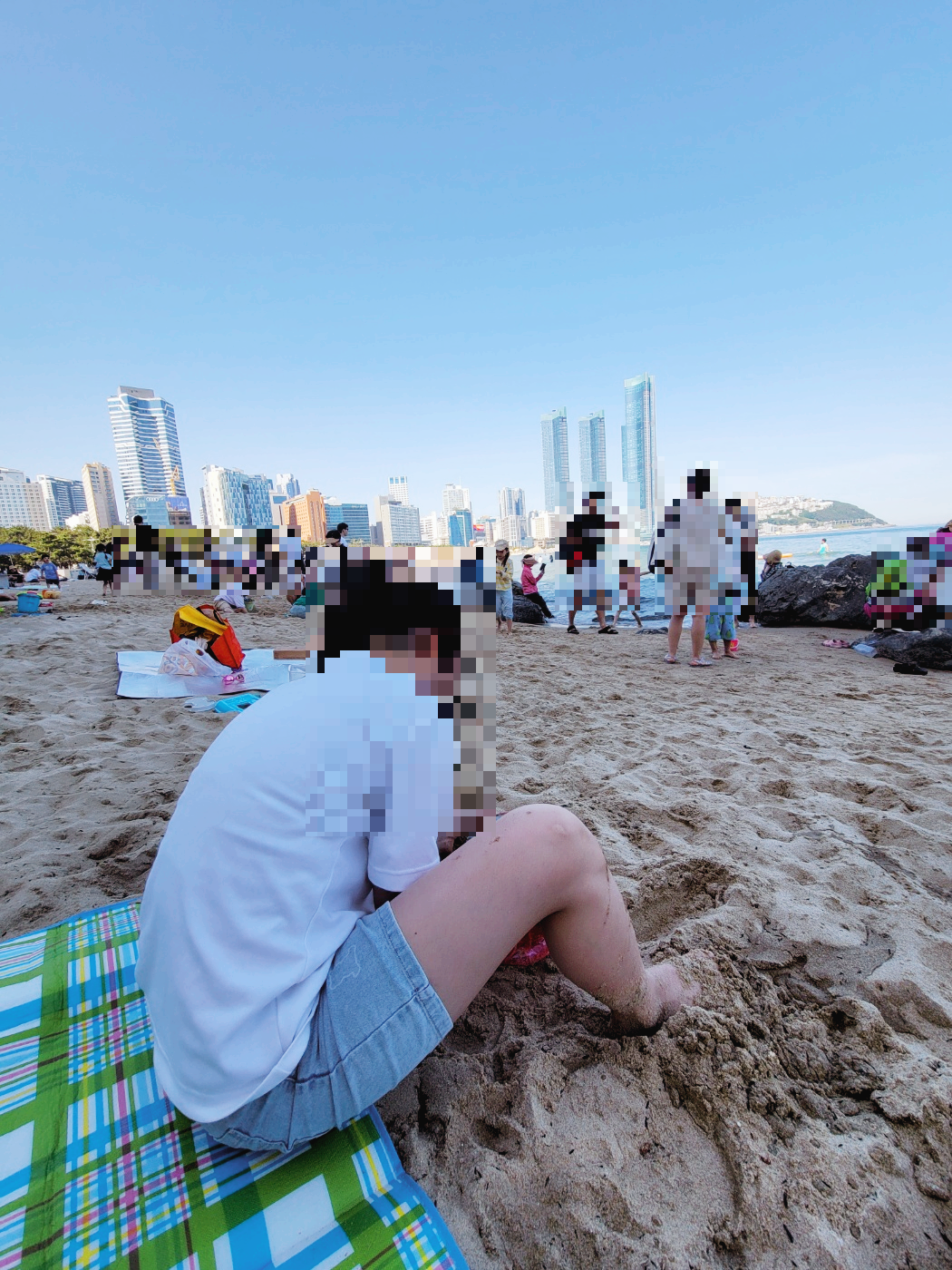 조선비치 쪽은 큰 바위들이 있어 아이들이 바다 체험하기엔 정말 좋은 것 같아요.