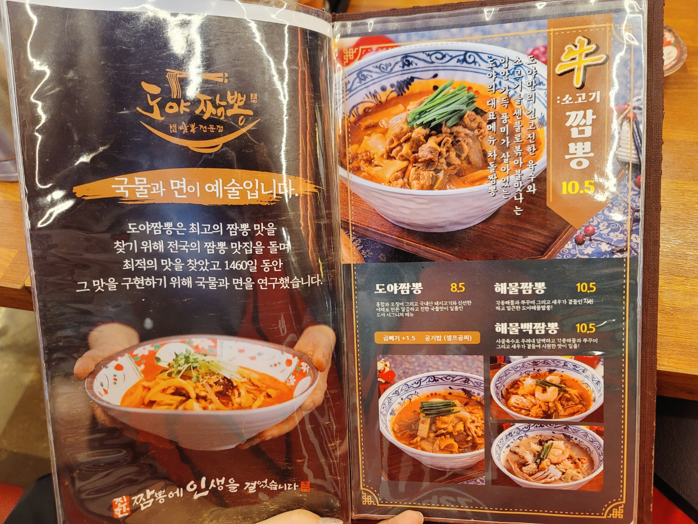 도야짬뽕과 차돌짬뽕 두개중 고민이 되시겠지만...두분이 가셔서 하나씩 나눠 드시길 권유합니다.