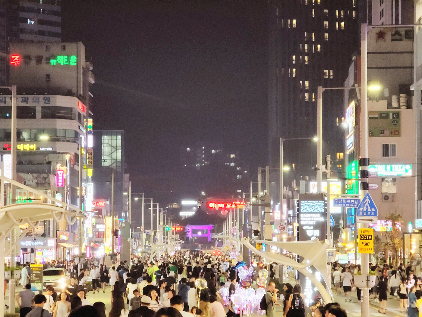 밤엔 거리에 엄청난 사람들이 다니구여...