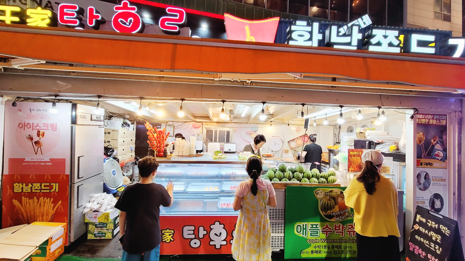 덥다면 많이 더운 재래시장엔 사람들의 줄이 끈이지 않습니다.