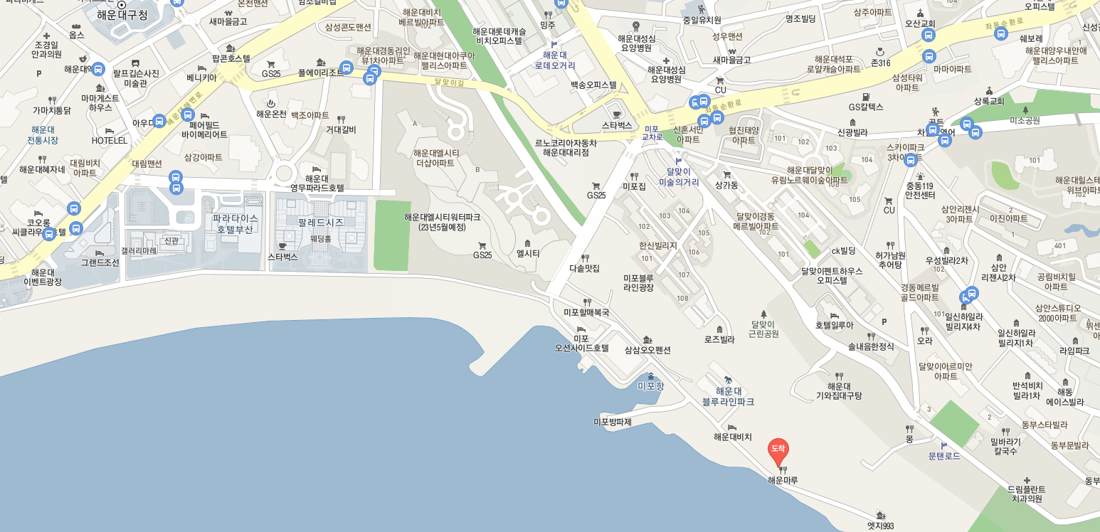 해운대 바닷가의 동북방향 끝 동네를 미포라고 부른다.
