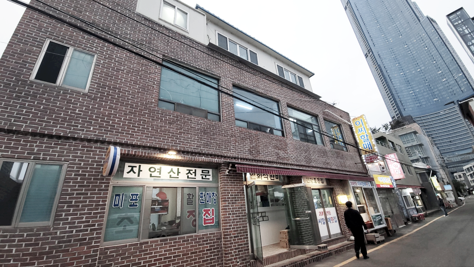 그러다 막 코너를 돌면 해운대 미포의 해운마루 횟집이 보인다.